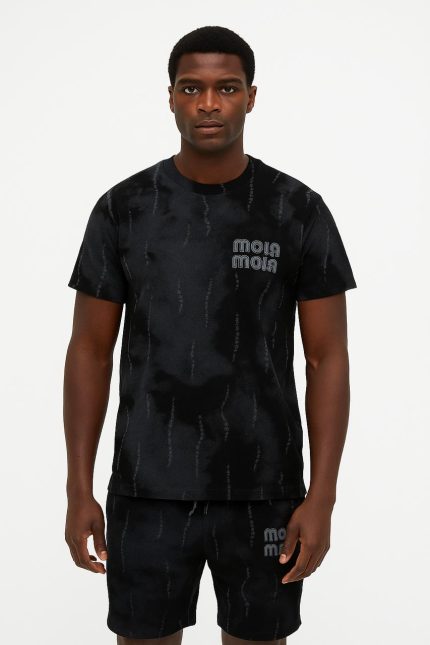 Men’s Set Casual Cargo Shorts Set – Print T-Shirt-BLACK
