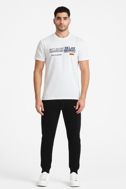 Men’s summer pajama, White T-shirt with Black Pants